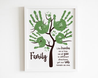 Family Tree Painting With Handprints : Goodshomedesign : Kids crafts with homemade cards, canvas, art, paintings, keepsakes.. Please note that this is not a home diy kit:) this keepsake is made from your loved one's actual hand and footprints! Here you can purchase a file of the bare tree and text which reads our family tree your children can use finger paints to leave their handprints on the tree. Simple family trees as the one below are also suitable if you are looking to create something which will be printed in a frame or even wallpaper. See more ideas about family tree, hand print tree, family tree painting. Once it is dry you can add name and year with paint or paint pen.